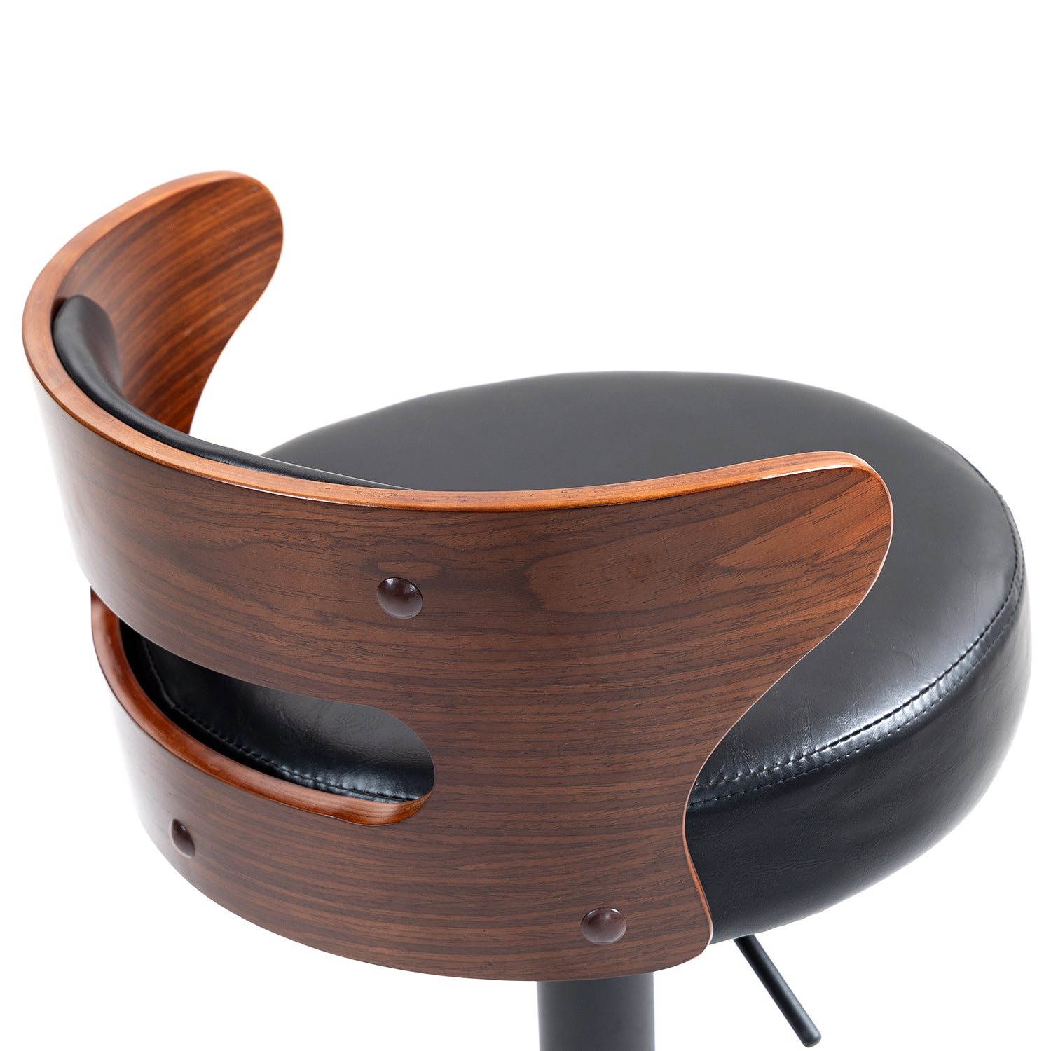 COKOS Juego de 2 Taburetes de Bar Banco de Barra de Cocina Giratorio y Ajustable Asiento de PVC Respaldo de Madera Curvado Apto para Desayuno Comedor Isla de Cocina (Negro+nogal)